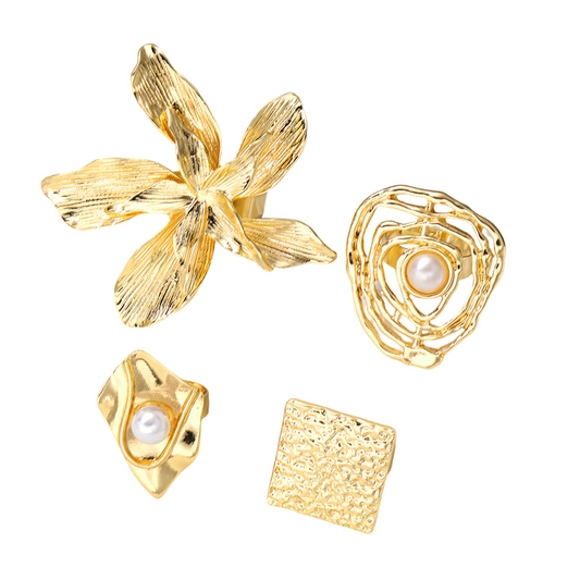 👑Bague Artistique Perles & Fleurs en Surdimensionné 💎🌸