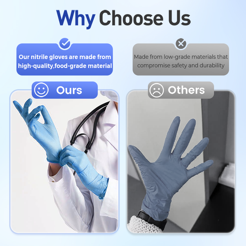QUALITÉ ALIMENTAIRE – Nos gants en nitrile sont fabriqués à partir de matériaux de haute qualité, conformes aux normes alimentaires, garantissant une manipulation sûre des aliments. Idéaux pour les cuisines, la restauration et les services alimentaires, ils répondent aux normes de sécurité strictes pour la préparation des aliments.