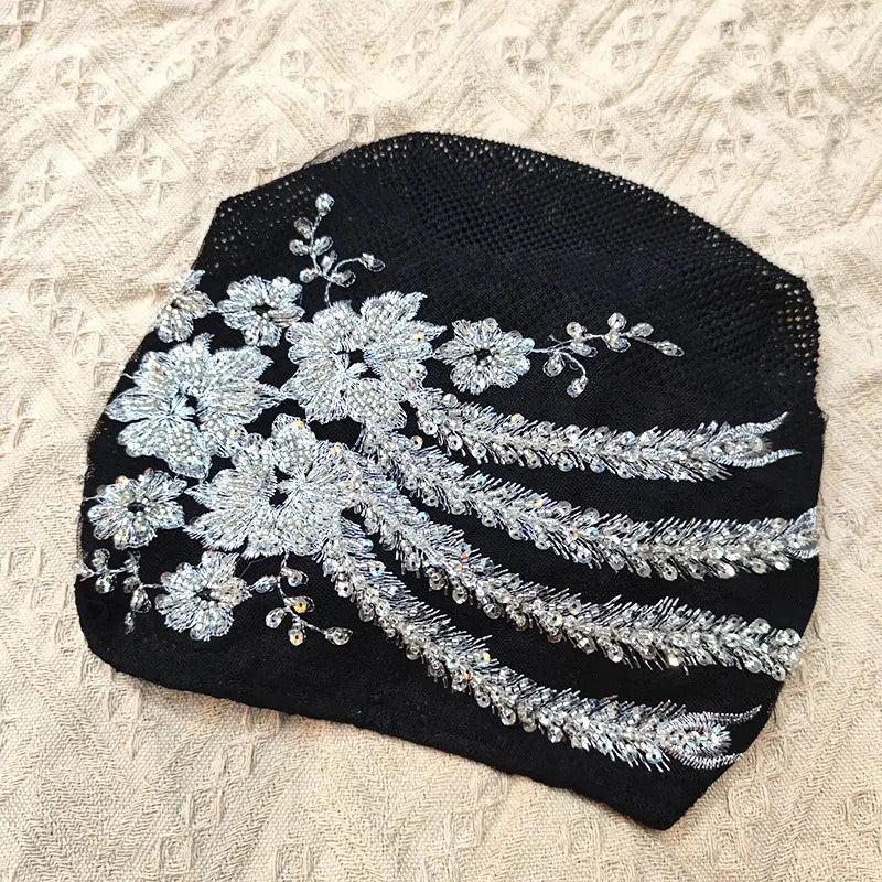 Élégant Bonnet-Foulard en Dentelle avec Décor de Fleurs à Paillettes