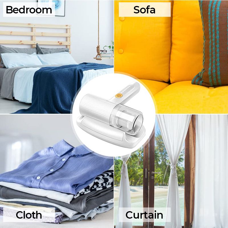 - Aspiration puissante pour éliminer efficacement les acariens, la poussière, les poils d'animaux, les cheveux et autres allergènes des lits, canapés, sièges de voiture, tapis, meubles et autres surfaces.