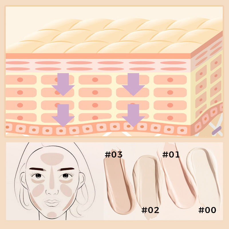 Couleurs : #00 Ivoire Lumière, #01 Beige Clair, #02 Beige Naturel, #03 Medium Doré