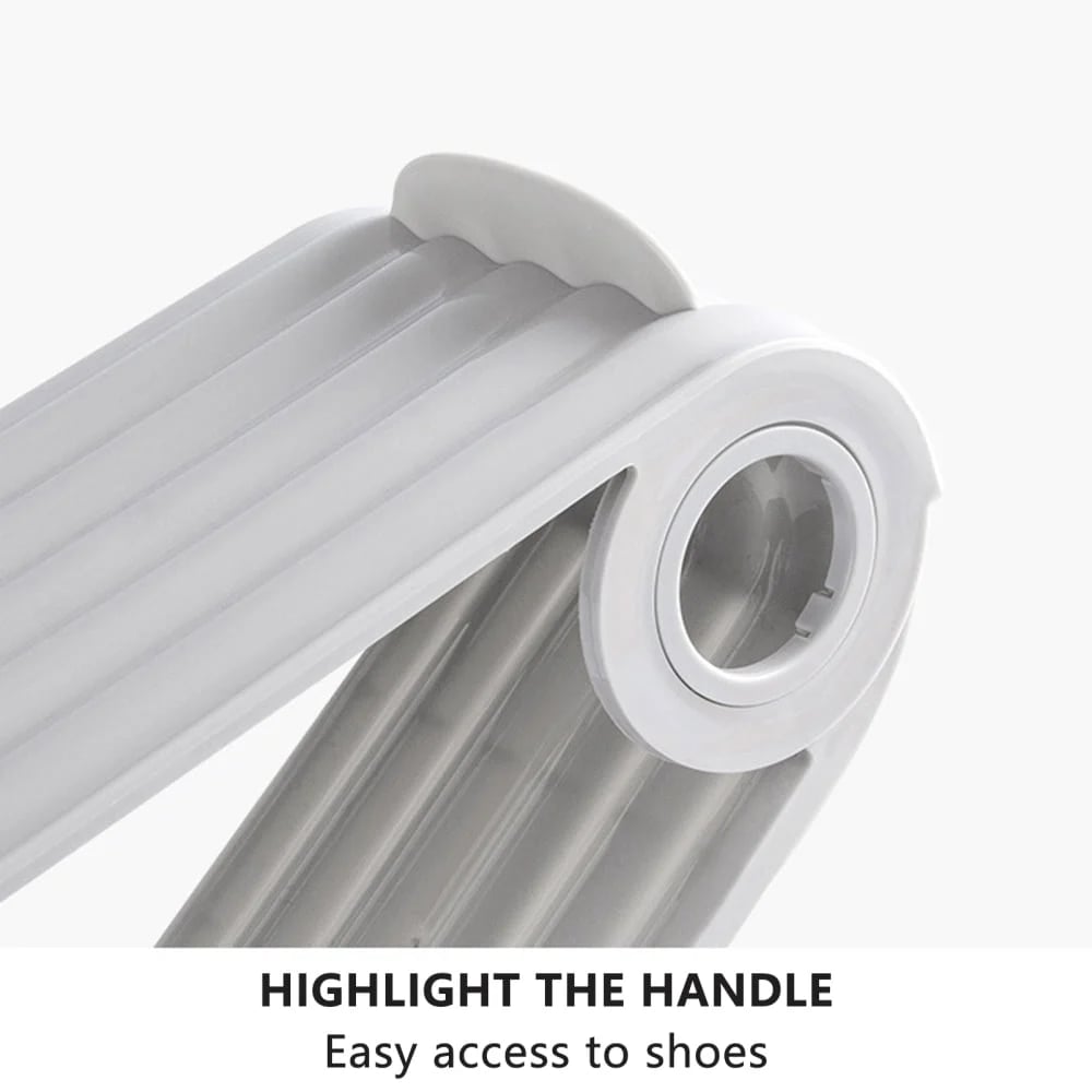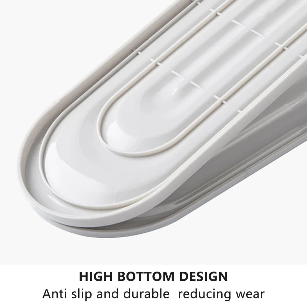 Conception antidérapante : Notre support à chaussures est conçu avec de petites bosses sur la surface, ainsi qu'avec des rabats sur les deux côtés et à l'arrière pour empêcher la chaussure supérieure de glisser.